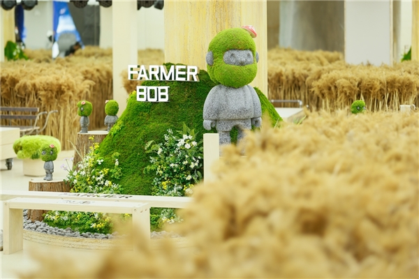 FARMER BOB将画中“麦田”所具有的生命力和治愈力量复刻进旗舰店,金色麦田、岩石、云朵、青苔能让消费者在喧闹街头找到安静的休憩之所,感受风吹麦浪的自然气息。