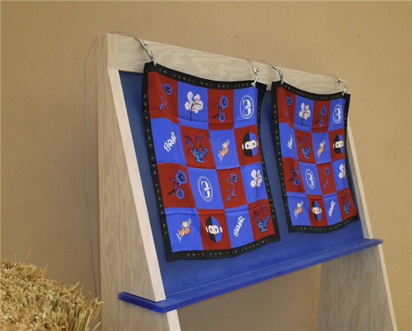 除了艺术潮流空间的打造,FARMER BOB还推出了全新潮流单品,涵盖潮流运动、潮配、家居等多个品类。在满足实用性的基础上,此次潮流单品将“自我独立、精神自由”的态度融入其中,同时在产品设计上追求简约且高级的质感。如FARMER BOB 长柄晴雨伞的伞头是精致的银色BOB形象,伞面采用极简的酷黑设计,伞内夜光效果塑造具有层次感的星空画面,撑开雨伞,浓厚的艺术气息扑面而来。而《红蓝协奏曲》丝巾,采用鲜活抢眼的红蓝撞色,红色优雅,蓝色高贵,互不妥协却又相得益彰,既充满经典的复古情调也有着乐活超然的休闲趣味,表现出FARMER BOB对艺术潮流多样表达的探索与创新。