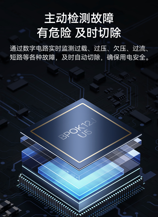 在第五代氮化镓技术的支持下,倍思灵傲系列数字式快充插线板30W不仅能做大小体积,同时发热量也更低,并且倍思将数字控制技术应用在倍思快充插线板上,通过主控芯片实时监控交流电线路的过载、过压、过流、短路等的故障,当发现异常情况马上断电,提升安全性。