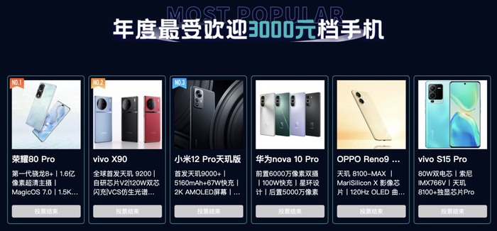 在“机锋2022年度评选”中,由广大网友在线票选出的“年度最受欢迎3000元档手机”中,荣耀80 Pro凭借深度调校的第一代骁龙8+、后置1.6亿超清主摄、智慧化的MagicOS 7.0操作系统、1.5K屏幕等领先配置,成为手机3000元档位No.1。