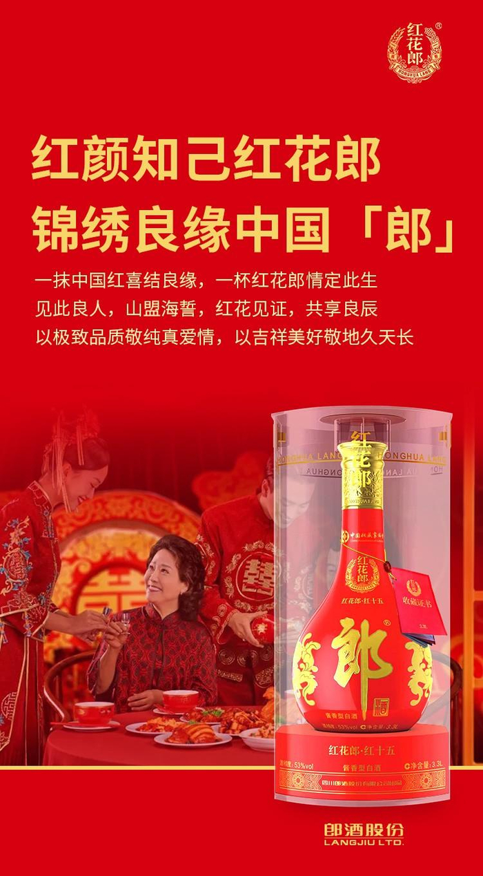一抹中国红喜结良缘,一杯红花郎情定此生;见此良人,山盟海誓,红花见证,共享良辰;以极致品质敬纯真爱情,以吉祥美好敬地久天长。作为婚礼中当仁不让的“气氛担当”,红花郎·红十五3.3L兼具艺术外观、沁人品质、吉祥象征与美好祝愿,陪伴携手一生的爱侣开启红红火火、福气满满的新生活。一口馥郁,鸿运加满,一齐分享,欢喜流淌。