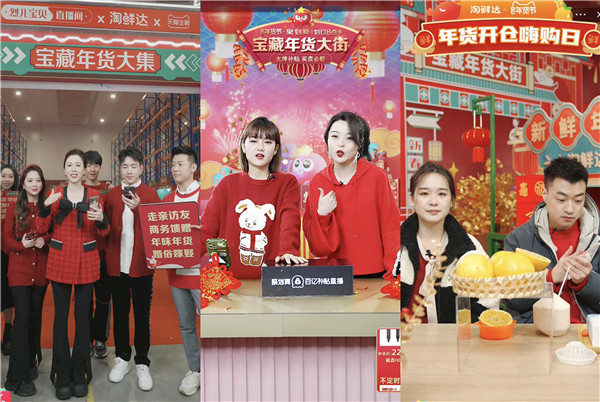 此外,天猫生鲜还极具创意地把直播间搬到了年货大街现场,特别邀请淘鲜达官方、聚划算官方、淘宝头部主播烈儿宝贝直播间助力直播,带千万名消费者沉浸式逛市集、办年货,人气十分火爆。