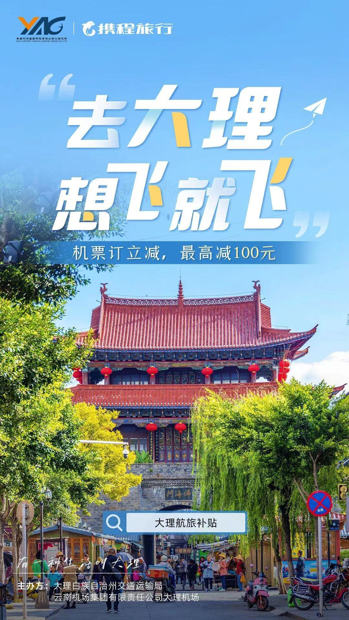 “去大理 想飞就飞”大理机场携手携程发放千万机票补贴,共盼游客约会大理、情定云端