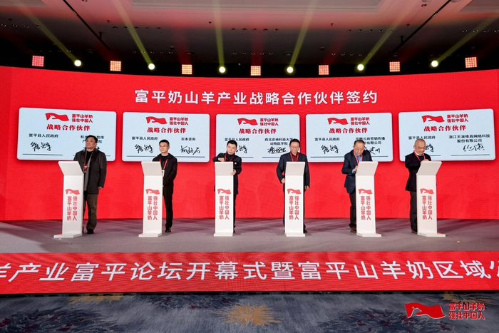 新年伊始,国际奶山羊产业富平论坛隆重召开,以国际化视角为切入点,聚合政府机构、行业协会、品牌企业、多元商业和知名媒体,探讨以富平奶山羊产业为代表的中国奶山羊产业高质量发展路径。中共富平县委、富平县人民政府与西北农林科技大学、中国营养学会、农本咨询、品牌农业与市场杂志社、杭州中际智库产业研究院、浙江天演维真等签订《富平奶山羊产业战略合作伙伴协议》,聚合资源赋能富平奶山羊产业高质量发展,共铸奶山羊产业高地,全力打造规格高、参会资源多、代表性广、关注度高的奶山羊产业开年盛会。