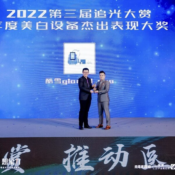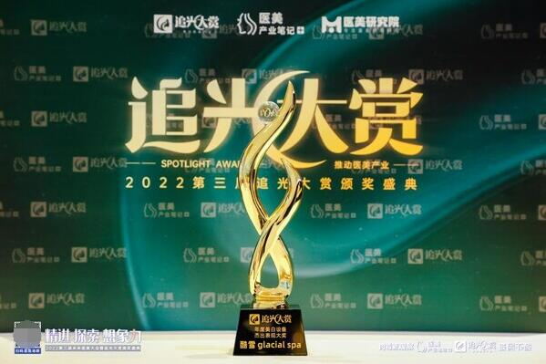 酷雪glacial spa在刚刚结束的「精进探索想象力·2022第三届未来医美大会暨追光大赏颁奖盛典」上,凭借着卓越美白功效、沉浸式护理体验以及全新市场理念,强势斩获「年度美白设备杰出表现大奖」。