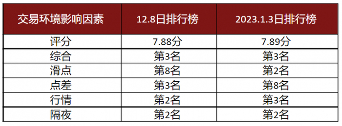 2023年的第一个交易日,外汇天眼更新了新年的第一份交易环境排行榜单。