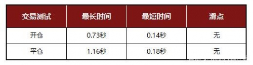 开仓速度比较快,平均时间大约都在10毫秒以内,开平仓均无发现滑点现象。