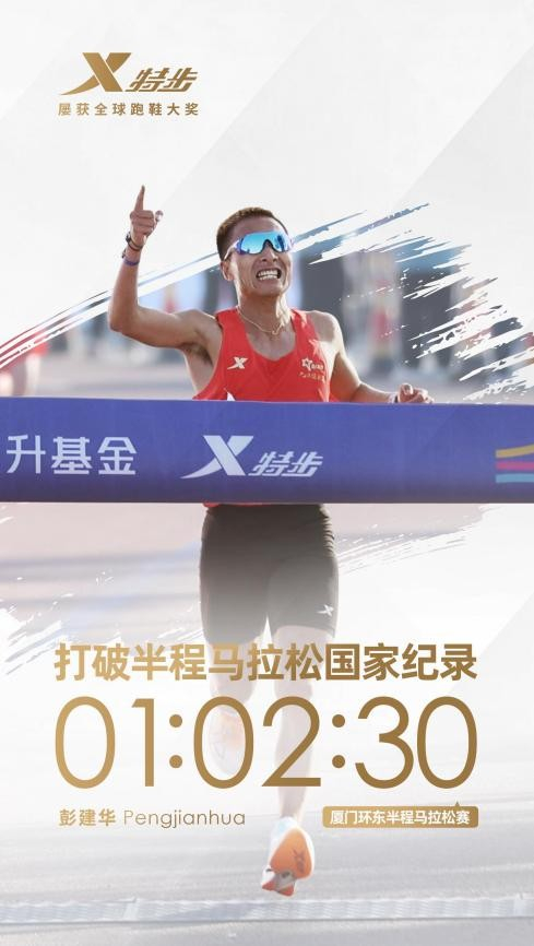 12月18日,运动员彭建华、董国建在2022厦门环东半程马拉松赛上,分别以1小时02分30秒、1小时02分37秒的成绩,双破尘封13年之久的半程马拉松国家纪录。运动员路颖也以1小时12分09秒的成绩,问鼎女子半马赛道冠军。据悉,以上运动员均穿着特步160X 3.0 PRO作为马拉松跑鞋。而成绩的取得也让特步马拉松跑鞋的专业实力得以充分展现。