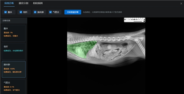 一直以赋能宠物医疗行业高质量发展为己任的谛宝诚,近年来在AI诊疗领域的研究应用也不断开花结果。临床实践显示,谛宝诚的AI技术成果在帮助宠物医生诊断宠物方面功效非常显著。更为重要的是,针对市场需求,谛宝诚的AI辅助诊疗系统不断优化升级,除了原有的腹水、骨折等诊断功能之外,此后又新添了肺水肿、气管炎等多种常见病诊断功能。