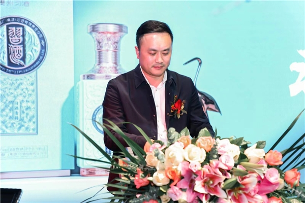 深圳天玑创意创始人(习酒青樽设计师)罗锟介绍了设计理念,习酒青樽以天青色为主基调,天青是指滂沱大雨后天空放晴的颜色,在中国亦代表光明磊落的颜色,瓶身造型原型来自玉琮,琮是是古代重要礼器之一,也是权利和财富的象征。