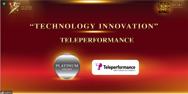 Teleperformance获得2022年度CC-APAC亚太客户中心卓越技术创新类白金奖
