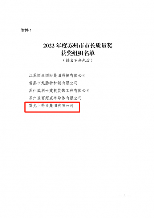 近日,江苏省苏州市质量奖名单揭晓。经过申报推荐、资格审查、资料评审、现场评审、问询答辩、综合评价、审议公示等程序,雷允上药业集团有限公司被授予2022年“苏州市市长质量奖”。