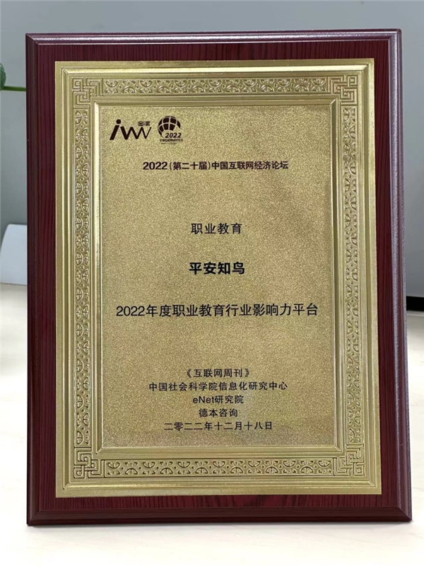 自创办以来,“金i奖”评选机制甚为严格。平安知鸟因在职业教育领域的技术水平和服务能力受到业界各方的认可,最终通过层层严格筛选获评“2022年度职业教育行业影响力平台”。