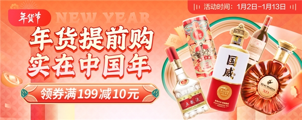 随着年味渐浓,返乡潮开启,满载年货的行囊和喜气洋洋的人群成为各地春运的缩影。1月2日至1月13日,京东酒世界开启以“年货提前购 实在中国年”为主题的新一波年货节活动,同期,还有针对红、白、洋、啤四大品类的专属会场,为消费者新年返乡带来年货新选择,并用贴心的服务为春运“减负”。