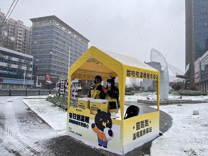 近日,新式茶饮品牌“甜啦啦”启动“冬日送温暖”项目,走上品牌总部所在地安徽蚌埠的街头,向在寒冷室外辛苦劳作的户外工作者递上一杯温暖的茶饮,暖手更暖心,为默默奉献的人送去品牌的关爱和温暖。