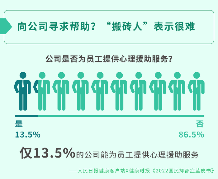 从《中国心理安全图谱》提供的数据来看,仅13.5%的公司能为员工提供心理援助服务,而86.5%的公司并未给员工提供心理援助服务。这更加强调了人们在职场保护自我心理安全,职场人共同维护心理安全的重要性。