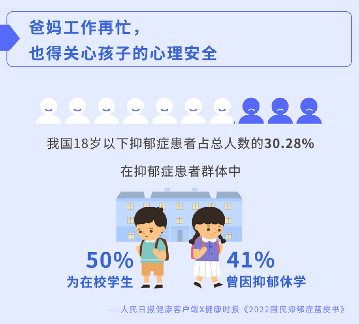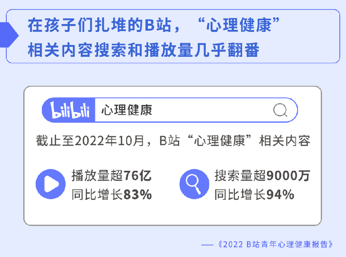 图谱显示,压力与焦虑对心理安全的威胁正逐步从职场转移至家庭中。许多职场人深陷家庭与工作无法良好平衡的压力漩涡中,更重要的是,“有娃一族”还需警惕心理安全威胁蔓延至家中的孩子。数据显示,我国抑郁症患者群体中50%为在校学生,41%曾因抑郁休学;而在青少年热衷的视频平台Bilibili中,“心理健康”相关内容的搜索和播放量几乎翻番,这足以证明心理健康已经是青少年群体广泛关注的议题。