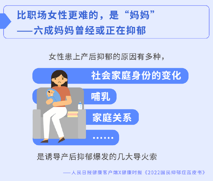 作为首届中国心理安全月重点关注的人群,20-35岁人群不仅是社会“中流砥柱”,也是家庭生活中的核心成员,他们同时承载着社会、工作压力与亲子关系、教育等多维压力:超过六成的妈妈曾经或正在经历抑郁,其中六成孕期妈妈的产后抑郁无法被家人理解。当家长陷入焦虑与过度紧张,心理安全防线崩溃,孩子的心理安全状况也难以稳定。