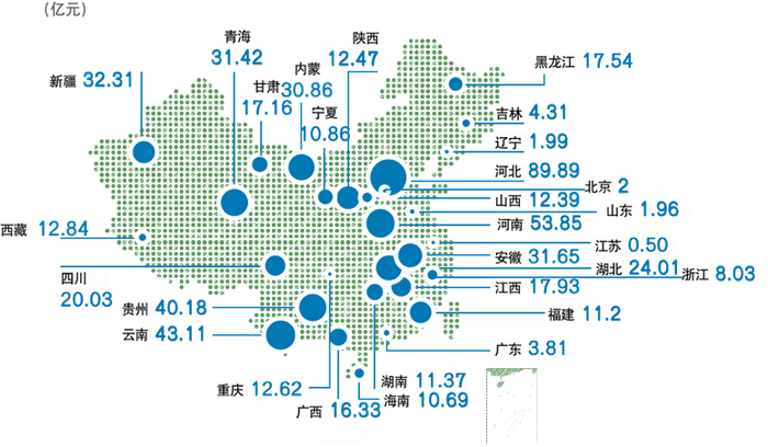 其中,14个原集中连片特困地区(包括大兴安岭-南麓山区、燕山-太行山区、吕梁山区、六盘山区、大别山区、秦巴山区、武陵山区、罗霄山区、乌蒙山区、滇桂黔石漠化区、滇西边境山区、四省藏区、西藏区、新疆南疆三地州等)全部覆盖,在原片区县投资392.04亿元。