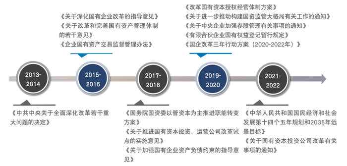 在2013年11月召开的十八届三中全会上审议通过了《中共中央关于全面深化改革若干重大问题的决定》,其中提到“完善国有资产管理体制,以管资本为主加强国有资产监管,改革国有资本授权经营体制,组建若干国有资本运营公司,支持有条件的国有企业改组为国有资本投资公司”,自此国有资本投资、运营公司的概念被正式提出。
