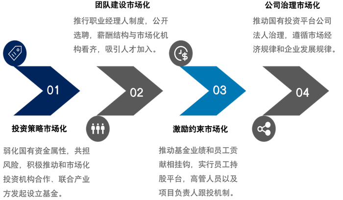 一是以直接项目为主,通过国有控股集团主体的自有资金直接对企业进行出资,一般以控股战略投资为主;或通过国有投资平台发起设立子基金进行直接投资,一般为财务性诉求为主,配以产业引导作用。