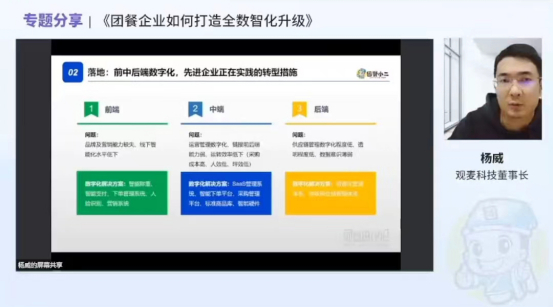 观麦科技创始人 杨威 为我们带来《团餐企业如何打造全数智化升级》的专题分享。
