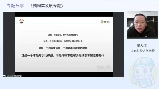 中国饭店协会团餐专委会专家委员、山东好煮夫食品科技有限公司董事长窦大海先生带来《预制菜发展专题》分享。随着资本市场对预制菜的持续加热,越来越多的品类被“定义”为预制菜。而对于团餐行业来说,产品的推陈出新、个性化组合、供应链品控和食品安全监控等环节都决定着有没有好吃、健康、个性化的预制菜产品提供给用户,这是企业需要长期修炼的基本功。