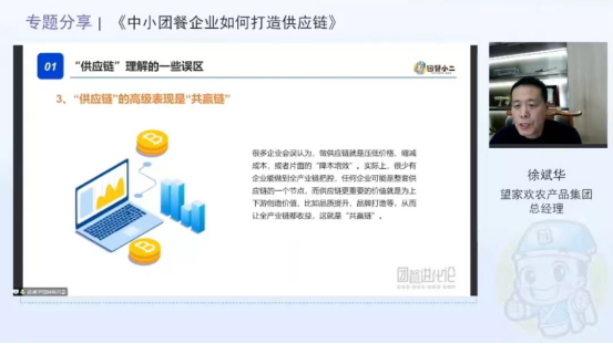 望家欢农产品集团总经理徐斌华带来《中小团餐企业如何打造供应链》专题分享。