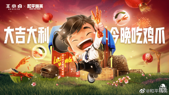 比如说,王小卤与国民手游《和平精英》的联动,推出和平精英联名商品 “王小卤&和平精英 联名大吉大利新春限定礼盒”,让手游的玩家们记住了“大吉大利,今晚吃鸡爪!”。