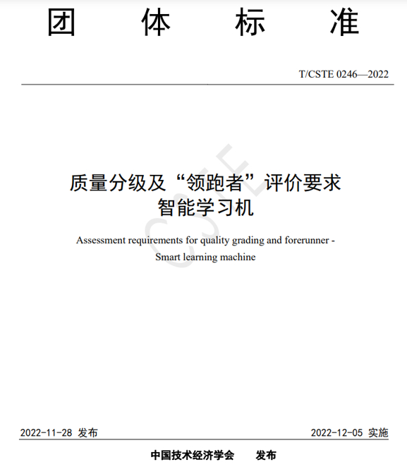 近日,由科大讯飞股份有限公司与北京泰瑞特检测技术服务有限责任公司联合牵头起草的《质量分级及“领跑者”评价要求 智能学习机》团体标准正式发布实施,标准由中国技术经济学会归口,规定了智能学习机产品质量及企业标准水平评价的评价指标体系、评价方法及等级划分,为智能学习机产品质量及企业标准水平评价提供了技术指引。