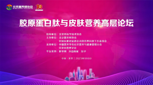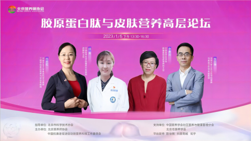 为了进一步聚焦新形势下行业面临的机遇与挑战,推动市场的有序健康发展。2023年1月6日,由北京市科学技术协会指导,北京营养师协会、中国抗衰老促进会功效营养科技工作委员会主办,中国营养学会社会营养与健康管理分会,北京市营养学会支持的“胶原蛋白肽与皮肤营养高层论坛”在北京正式开幕。