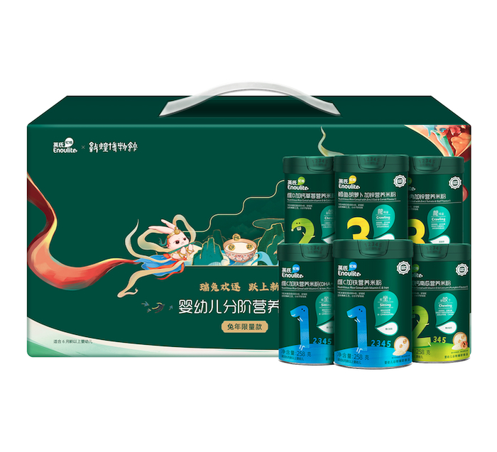 当然,消费者也可选择含有不同阶段营养米粉组成的新年定制礼盒,让这份特别的新年礼陪伴宝宝一步一步跃上新阶,茁壮成长。