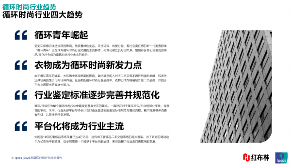 后疫情时代,在经济平稳较快回升基础上,挖掘内需潜力,激发增长动力,进一步增强经济复苏的稳定性成为主旋律。在低碳理念兴起的当下,让时尚产品在消费端二度流通及循环的 “循环时尚” ,已成为消费市场复苏的新增量。 1月9日,红布林联合益普索发布《2023循环时尚行业趋势报告》,透视循环时尚这个千亿赛道的新风向。