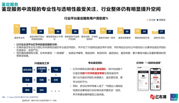 依托领先全行业的鉴定、定价、物流配送、仓储等服务,红布林为用户带来卓越的平台体验。报告指出,红布林用户在商品鉴定/评级、客服等方面整体满意度较高,成为行业“领跑者”。与此同时,由闪电发货政策和新一代循环包装加持的物流配送服务、标准化和专业化管理的仓储环境,也让红布林成为“行业标杆”。