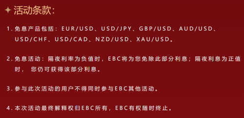 投资者在静待市场信号落地时,也希望通过降低交易成本,获得更多的交易空间。EBC金融始终将用户放在首位,特别筹划了本次免息的活动。