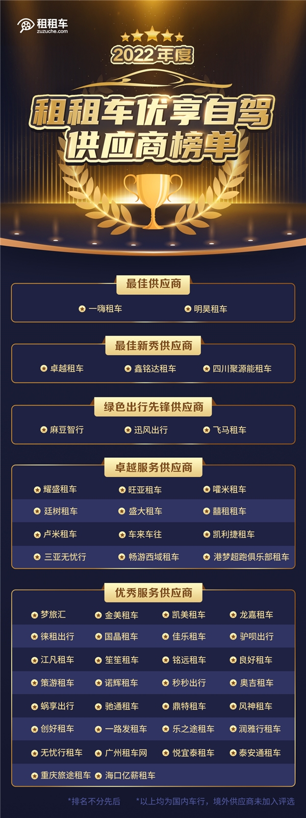租租车发布2022年度优享自驾供应商榜单,50家车行入围
