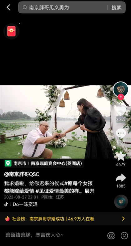 “南京胖哥见义勇为身中三刀,女友不离不弃毅然辞职专心照顾。”34岁南京胖哥官宣求婚成功的消息在网络上热播后,获得众多网友的点赞和真诚祝福。在共同经历此等磨难后,两人的爱情也修成正果!小编认为,在爱情中,真爱的落脚点应该是“爱的行动”,只有爱的行动实实在在,才能让彼此感受到真心与珍惜。胖哥见义勇为后女友陪其共渡难关,就是“爱的行动”最有力的证明。