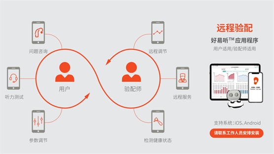 除了充电,智能验配技术也是「新声科技」在行业内一项重要的技术创新。反复调试一直是传统助听器的痛点,在智能验配技术支撑下,新声在业内率先推出APP自主调节的助听器的技术和产品。用户可以在手机APP上对助听器进行自主控制调试。同时,当用户有需要的时候,有资质的专家也可以通过远程服务,为用户提供更专业的指导和调试。这项技术获得了双耳平衡、测听专利等验配技术专利。截止现在,新声开发的APP技术已用于全球40多个品牌助听器产品里。