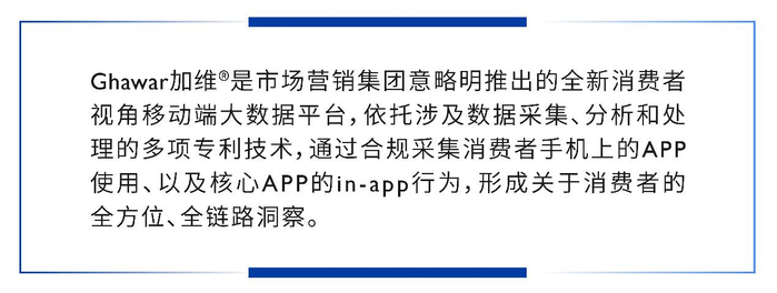 Ghawar加维是意略明市场营销集团推出的全新消费者视角移动端大数据平台,依托涉及数据采集、分析和处理的多项专利技术,通过合规采集消费者手机上的APP使用、以及核心APP的in-app行为,形成关于消费者的全方位、全链路洞察。