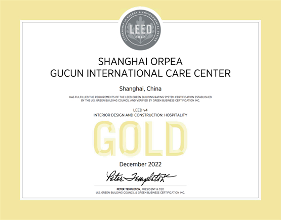 “恭喜上海欧葆庭顾村国际颐养中心通过LEED绿色室内设计与施工金级认证。”2022年12月15日,欧葆庭中国区工程与维保经理Matsu CHEN收到了来自美国绿色建筑委员会(USGBC)的消息。自2021年开始,历时1年,期间经历了多次疫情的反复,上海欧葆庭顾村国际颐养中心终于迎来了竣工验收与LEED绿色建筑的认证证书。这一份成果来之不易。