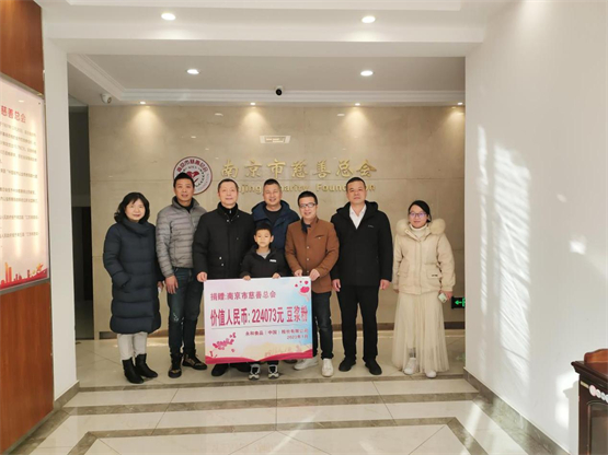 守望相助伸援手,爱心涌动暖人心,1月9日,一批由永和食品公司捐赠的营养豆浆粉送达南京市慈善总会,全力支持南京抗疫。捐赠仪式在南京市慈善总会举行,南京市慈善总会全晓副秘书长、王振平部长、南京第二人民医院邵院长、南京市明基医院许燕主任、永和食品公司代表共同出席捐赠仪式。