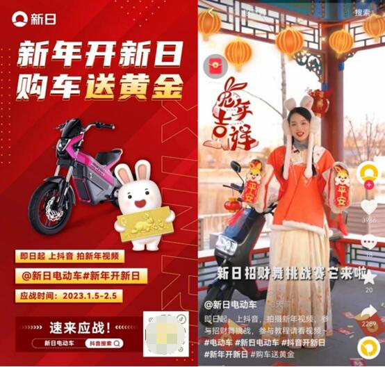 论今年的新春营销阵地,哪个品牌的含金量最高?新日电动车 #新年开新日 新春营销第一弹就高能不断,率先引爆黄金流量,福利体验“兔”much!