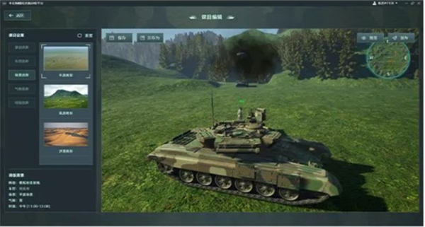 产品基于虚拟仿真技术结合软件构建出虚拟训练场景,并使用半实物模拟训练器和附属力学仿真设备,制造出虚拟场景下的运动动态和作用力,达到模拟训练、动作考核等目的。
