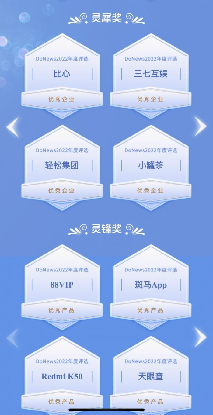 科技的快速发展,数字经济时代席卷而来,新一轮科技革命和产业变革突飞猛进、数字技术加速各行业发展,作为一家面向Z世代的头部电子竞技指导服务平台,比心已通过电竞社区、音视频服务等多业务场景的构建,形成立体化产品生态矩阵,近年来,积极进行企业数字化转型,目前已经取得创新成果,在12月30日,由DoNews举办的2022年度评选活动榜单正式公布,电子竞技指导服务平台比心被评为优秀企业,荣获“灵犀奖”。