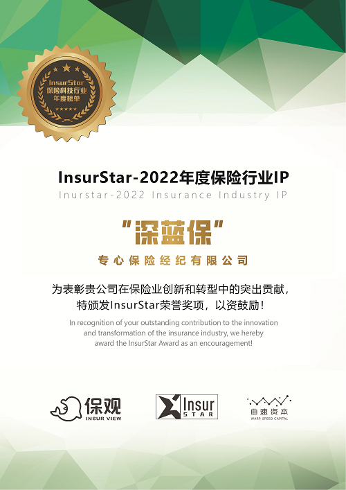 除此之外,在历时一个多月的保观InsurStar行业榜单征集与评选活动中,深蓝保专心保险经纪又获得了“年度保险行业IP”奖,值得注意的是,这已经是深蓝保第5次登上榜单。能得到行业的认可,再次证明了深蓝保的内容实力和商业价值。