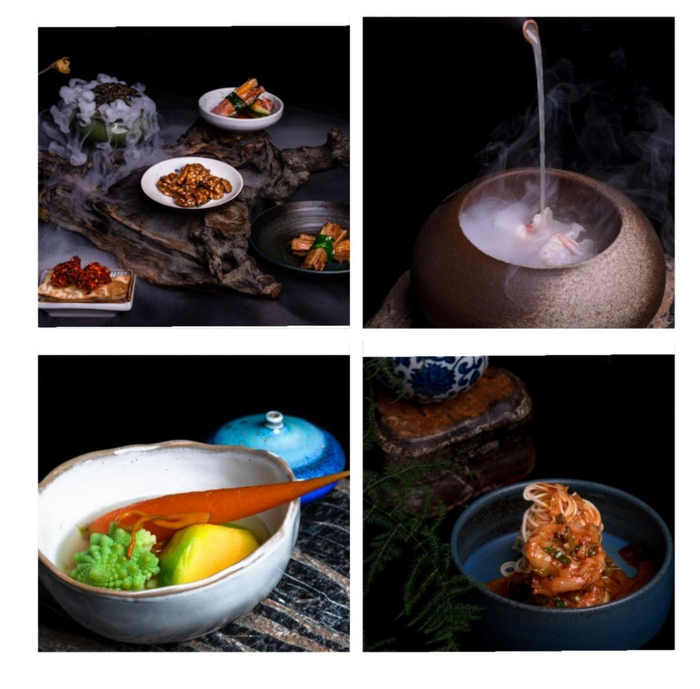 到了每年的九月十日,就是“不二隐庐”的年度重头戏——“山水之乐宴”了。周夏将自己和团队从海洋中、雪山上采集到的最地道,最新鲜的山海之味,在当天尽情挥洒,融汇于一席:以古书为蓝本的创意川菜、枯山水的摆盘、一器一物的美学呈现......当场的宾客除了能在潺潺流水的凉亭中享受着这席流动的盛宴,感受到全方面无死角的美食体验,更能在优美的摆盘中品味盘中乾坤,感受到周夏对保留川菜本味的坚持,以及他不断地探索与创新。