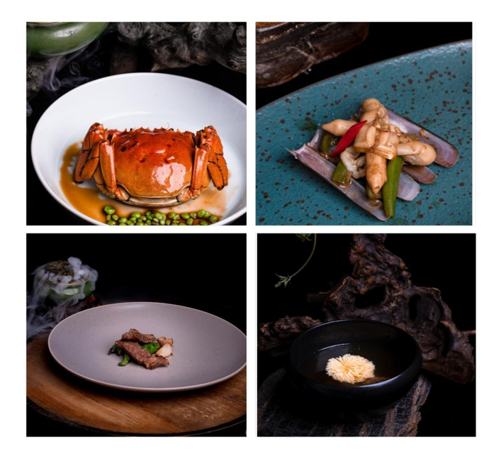 除此之外,还有青城山的新鲜蕨菜、南充的念鱼、从宁波“不二小院”定期空运来的海鲜......为了让客人吃到最新鲜最特色的食材,周夏带领团队遍寻全国各地,只为搜罗到那些来自祖国山河的人间至味。而除了精心选取的食材,为了给客人美的享受,周夏还去到景德镇待了一个月,专门学习如何制作食器,还带回了不少宋瓷、汝窑、砂器、手工陶器等,凭借自己专业的审美,如同什么样的人该穿什么类型的服装般,为各类菜肴设计精致的摆盘,冷暖色调互相映衬,美食与美学在餐盘碗碟中交相纷呈。