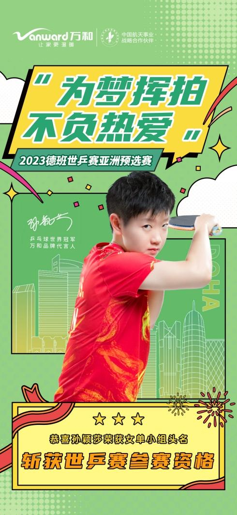 2023德班世乒赛亚洲预选赛,厨卫电器专家万和品牌代言人孙颖莎再创辉煌!