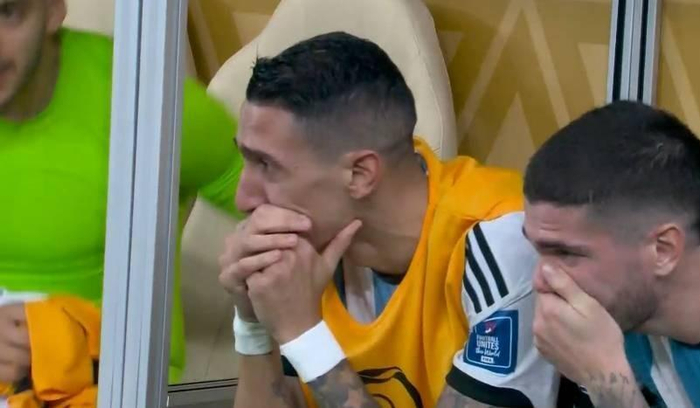 但当姆巴佩在97秒内连进2球扳平比分后,提前被换下的迪马利亚已是痛苦万分,法国人的逆天表现了似乎要将他十多年的国家队生涯毁于一旦。加时赛时,当梅西进球后,替补席上的迪马利亚非常激动,捂嘴哭泣。无论场上还是场下,天使对阿根廷的感情始终如一,他也始终在守护着阿根廷队。