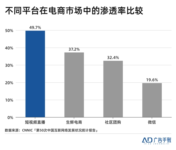 去年年中,CNNIC发布了一份统计报告,其中有两个数据很有意思:第一个数据,电商用户规模下滑100多万,释放出市场逆风的信号;但第二个数据却显示,49.7%的消费者已经通过短视频直播平台下单购买商品。